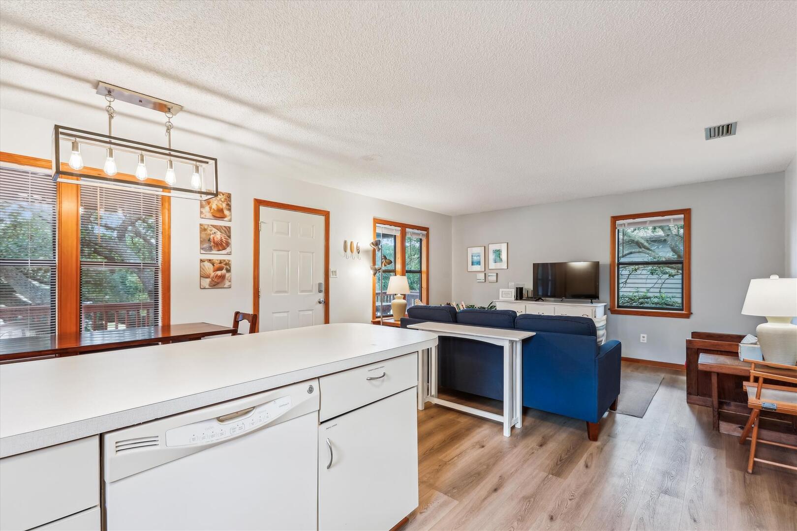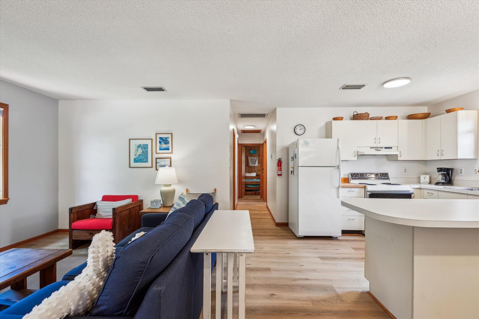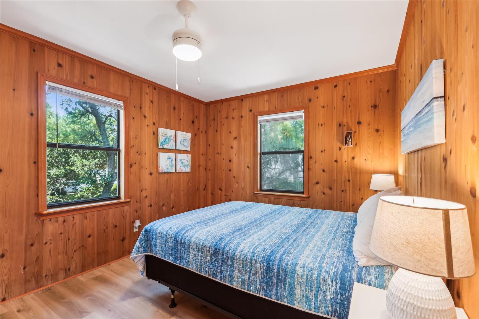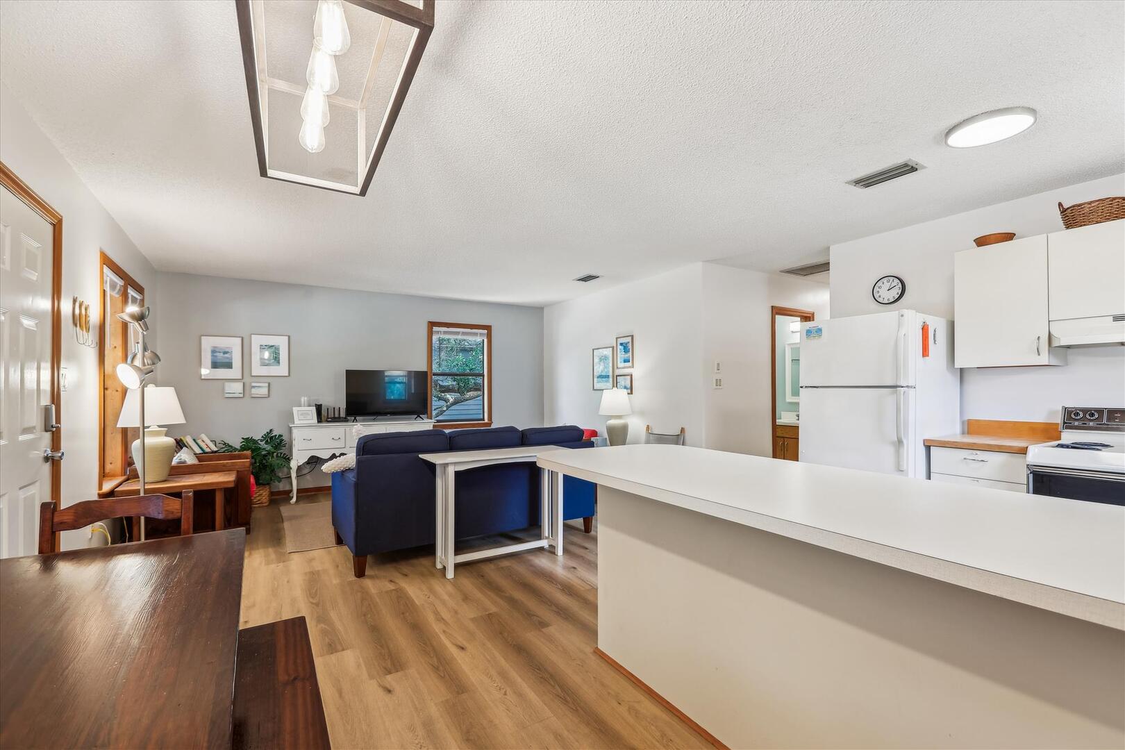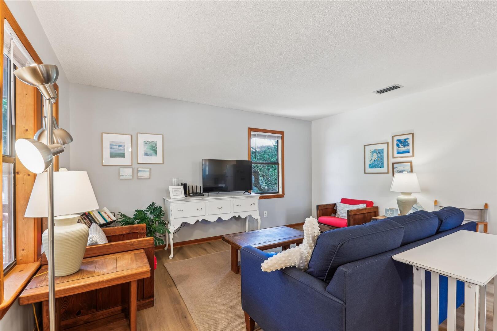 Discover "Bienvenue," your dream vacation getaway that feels like a fresh breath of elegance. Dive into 2024 with brand-new enhancements: sleek flooring, modern ceiling fans and freshly painted walls that radiate calmness. Settle into the family-style living room adorned with charming maritime touches or gather around the rustic dining table. With every detail thoughtfully updated, from the cozy bedspreads to the stylish lighting, "Bienvenue" offers an unparalleled experience of relaxation. Nestled in a quiet, family-friendly neighborhood perfect for bike rides, Bay Drive and Kitty Hawk Bay are a short stroll away. Dine al fresco on the front deck under the live oak tree. The ground floor features covered parking, laundry room and enclosed private shower for rinsing off after a day at the beach! Great location close to Kitty Hawk beach access, Wright Brothers Memorial and Hayman Blvd playground, coffee shops, galleries, restaurants, thrift stores, the new Target and much more. Your ideal getaway awaits.