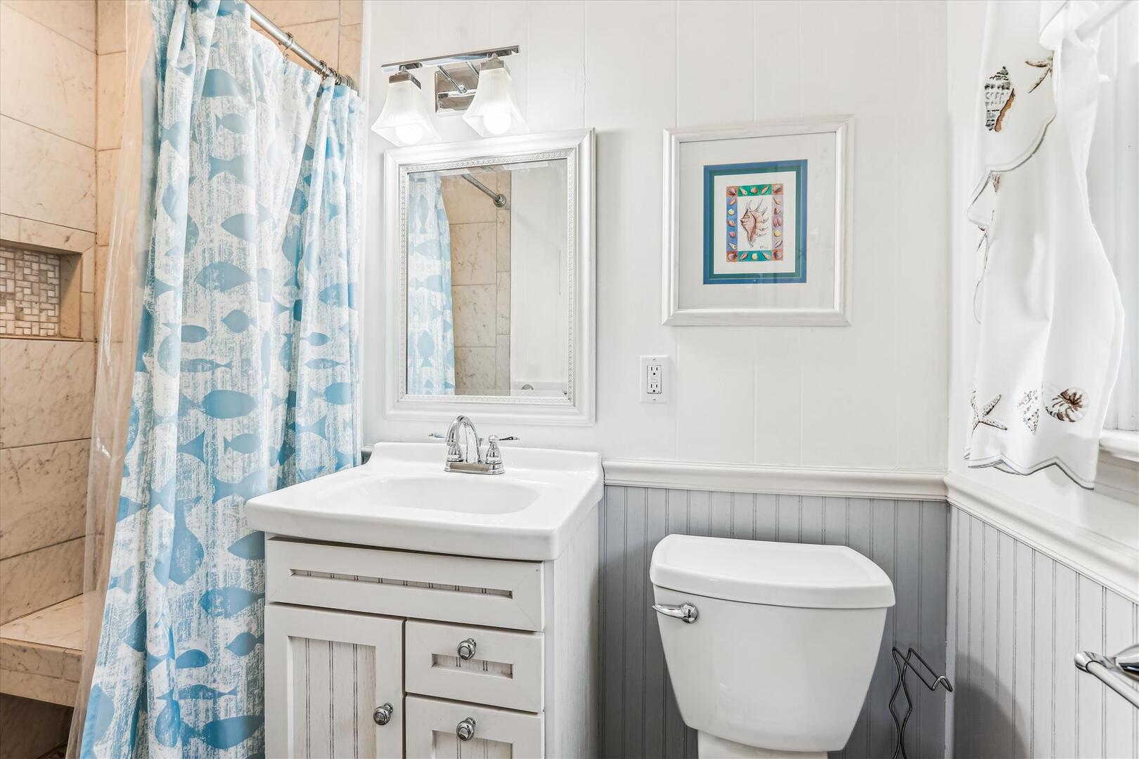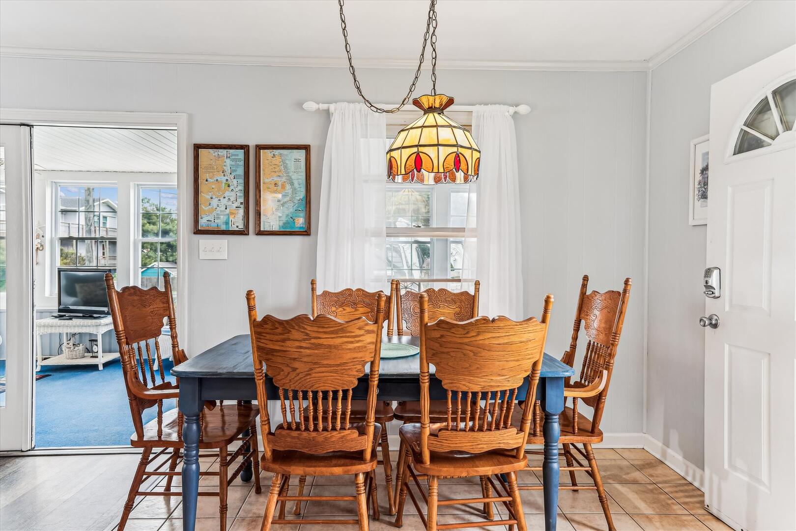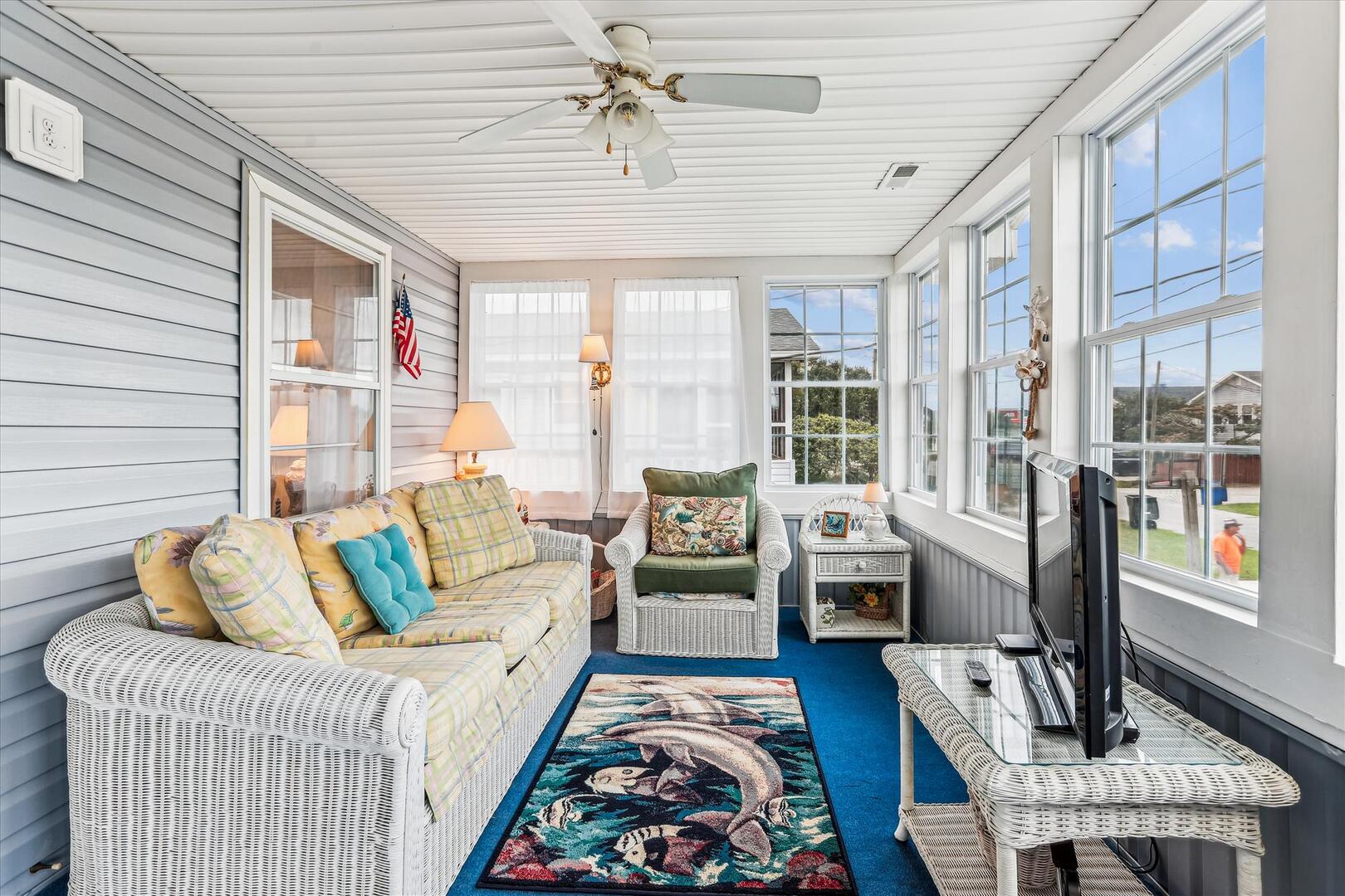 This classic beach cottage is located on a quiet residential street yet still in the heart of it all. Blankenship offers a delightful sunroom perfect for relaxation, conversation, and great times! The basketball goal is perfect for shooting afternoon hoops with the kids, or play a game of cornhole with the provided boards. Beach Chairs, Beach Umbrella and Beach Toys provided for your convenience. Blankenship is just minutes from the Outer Banks art hub, Gallery Row, new restaurant Shaka's Beach Bar and Grill, as well as laser tag, a harnessed adventure course, and outlet shopping.
