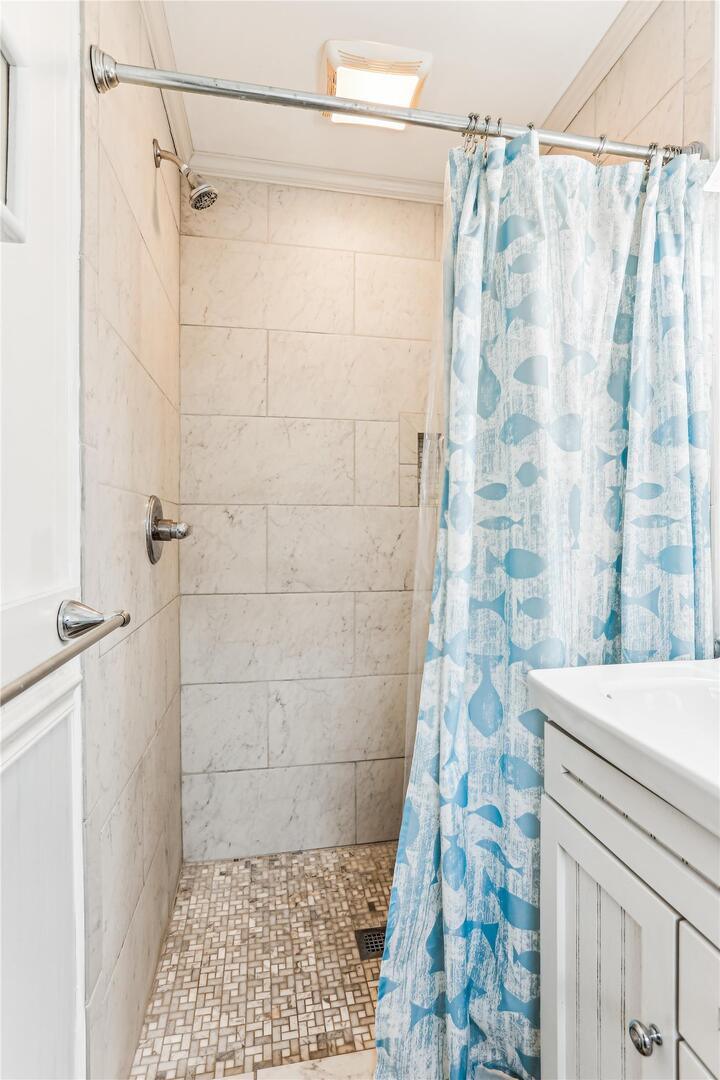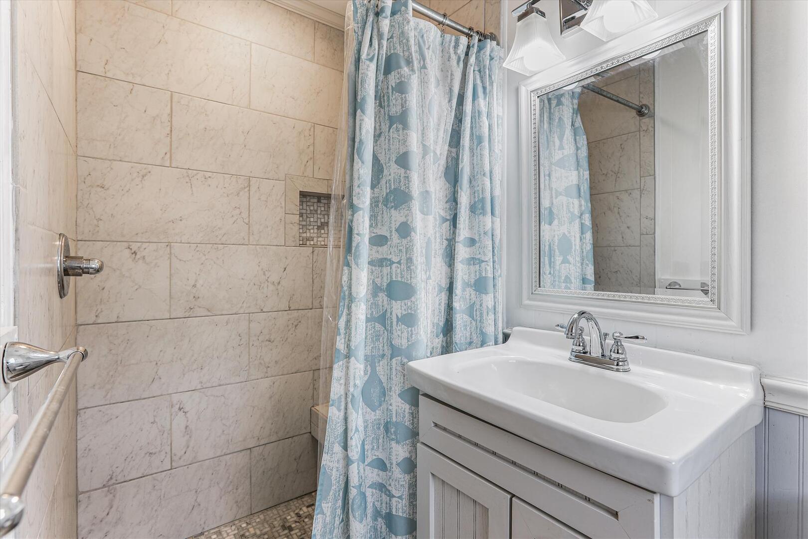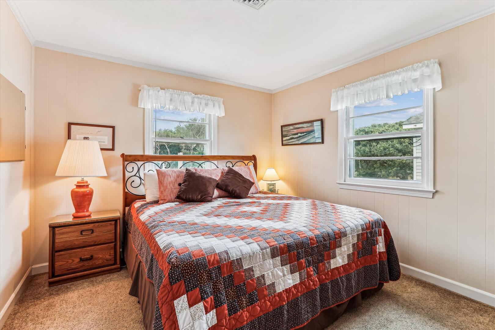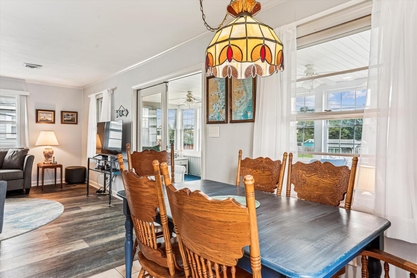 This classic beach cottage is located on a quiet residential street yet still in the heart of it all. Blankenship offers a delightful sunroom perfect for relaxation, conversation, and great times! The basketball goal is perfect for shooting afternoon hoops with the kids, or play a game of cornhole with the provided boards. Beach Chairs, Beach Umbrella and Beach Toys provided for your convenience. Blankenship is just minutes from the Outer Banks art hub, Gallery Row, new restaurant Shaka's Beach Bar and Grill, as well as laser tag, a harnessed adventure course, and outlet shopping.
