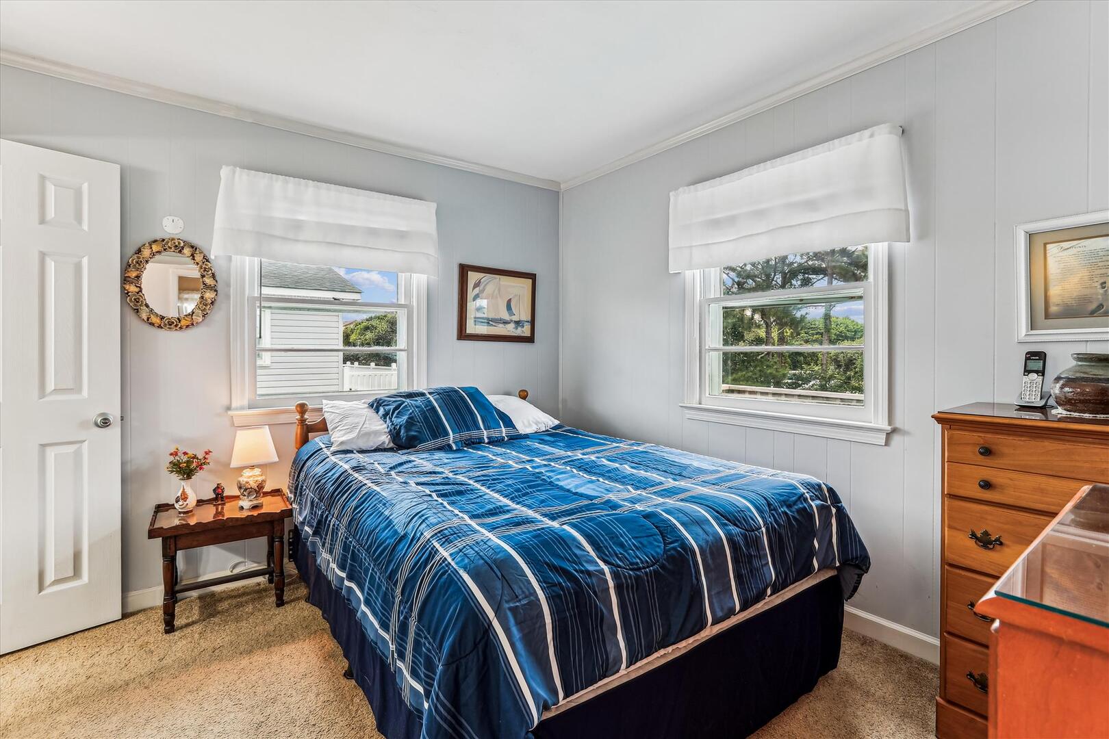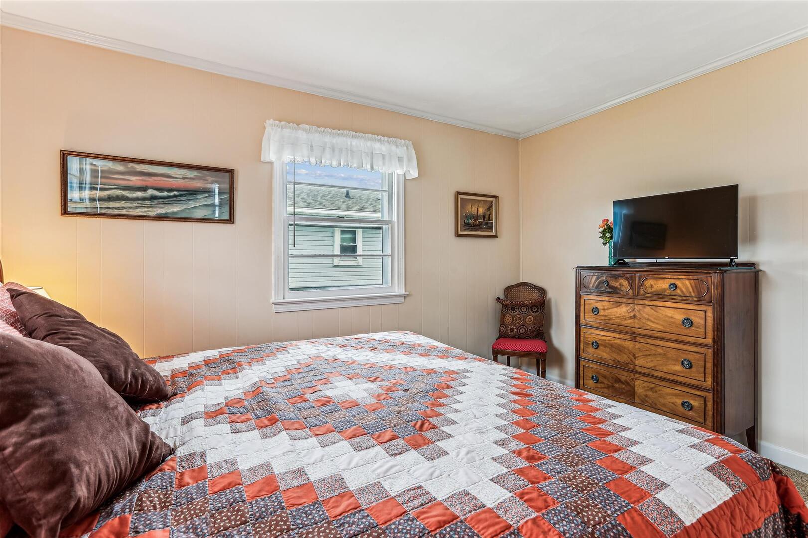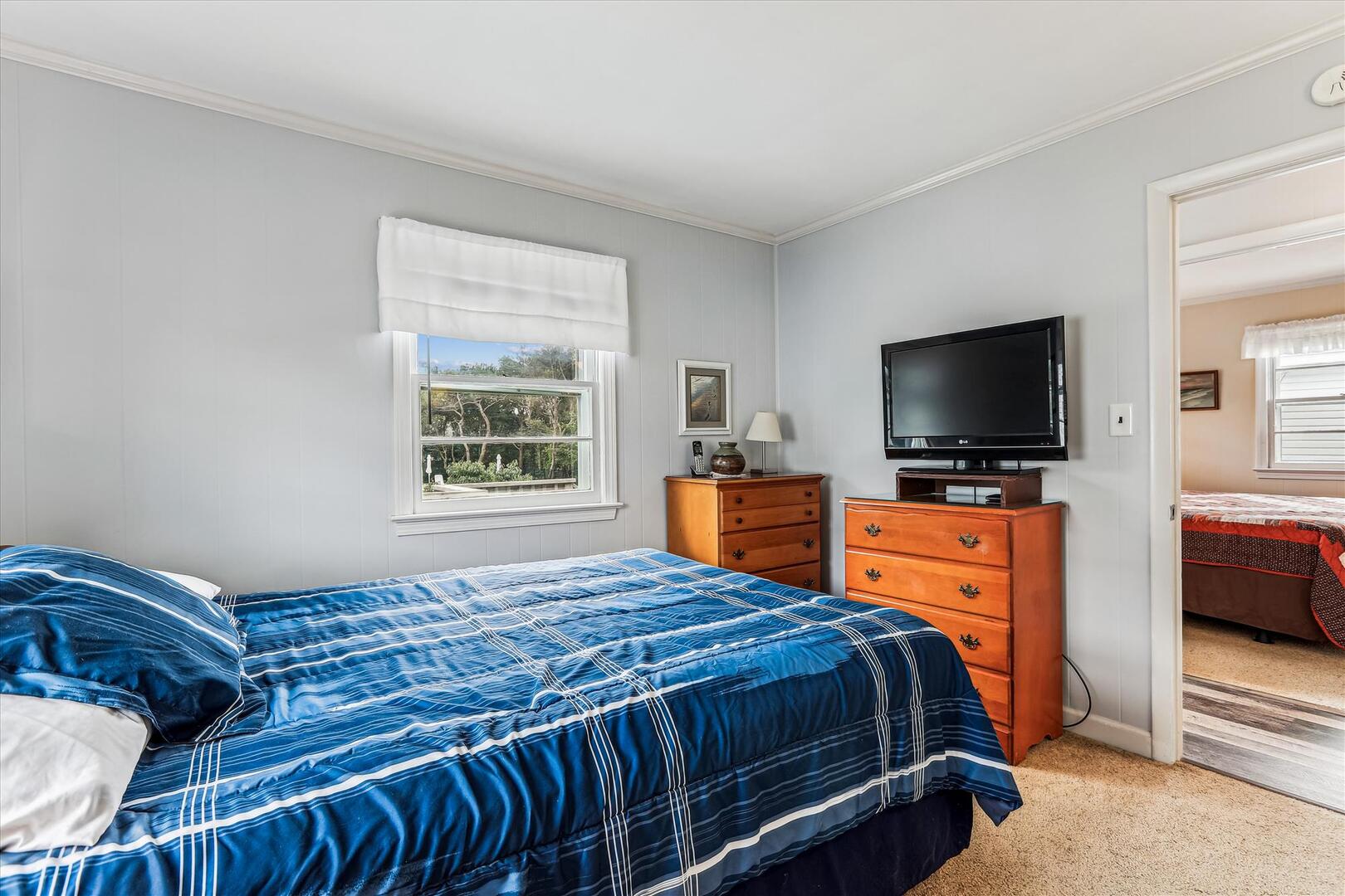 Step into 'Blankenship,' where timeless charm meets modern comfort. Unwind amidst the cozy seating, enveloped by curated bookshelves and gentle oceanic hues. The spacious living area, accentuated with a stunning area rug, beckons for heartfelt conversations, movie nights, or simply curling up with a good book. Let this be your sanctuary, an intimate escape to rejuvenate and create cherished memories.