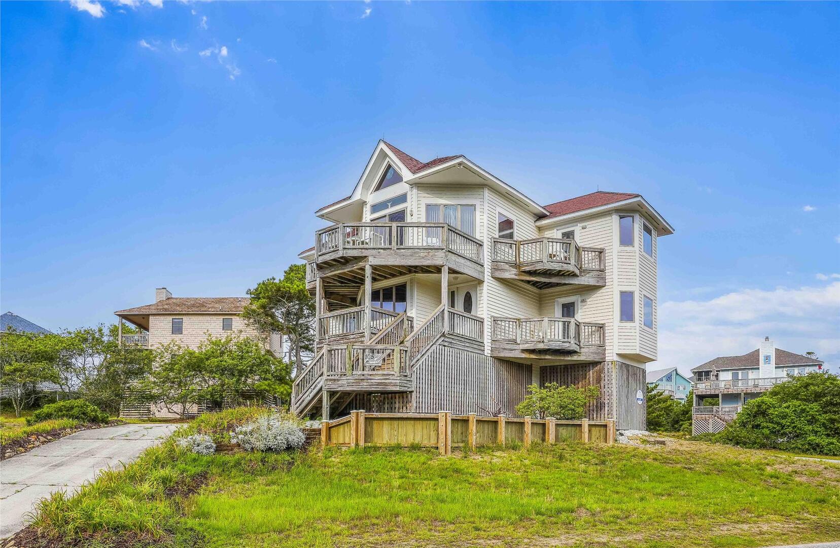 Welcome to Crystal Sands! Centrally located on the soundside in Duck, Crystal Sands is perched high in the Tuckahoe Community located just across from the Tennis & Pickleball Courts and the Community Swimming Pool. A short walk to the Soundfront Gazebo you will find ample opportunity for fishing, crabbing and observing some of the best sunsets in Duck. A short walk to the beach access ocean walkway you will enjoy catching the sun rise over the ocean, beachcombing for sea glass & shells, swimming & surfing or enjoying the moonlight & stars in the evening. Tuckahoe and the Village of Duck are bicycle friendly and the Duck Village Center is only a short walk or bike ride away where you will find fun and entertainment such as live music, Duck Amphitheater, Duck Boardwalk, boutique shopping, galleries, coffee, ice cream and donut shops and restaurants ranging from Seafood to Pizza to Barb-b-que. Perched high in the Tuckahoe Community, Crystal Sands offers sunrises from the Great room, front decks and some bedrooms. Crystal Sands is well equipped to make your vacation the best one yet.