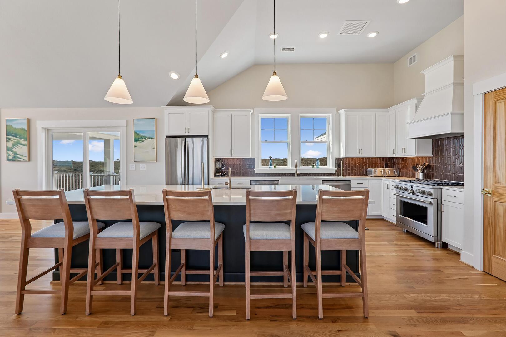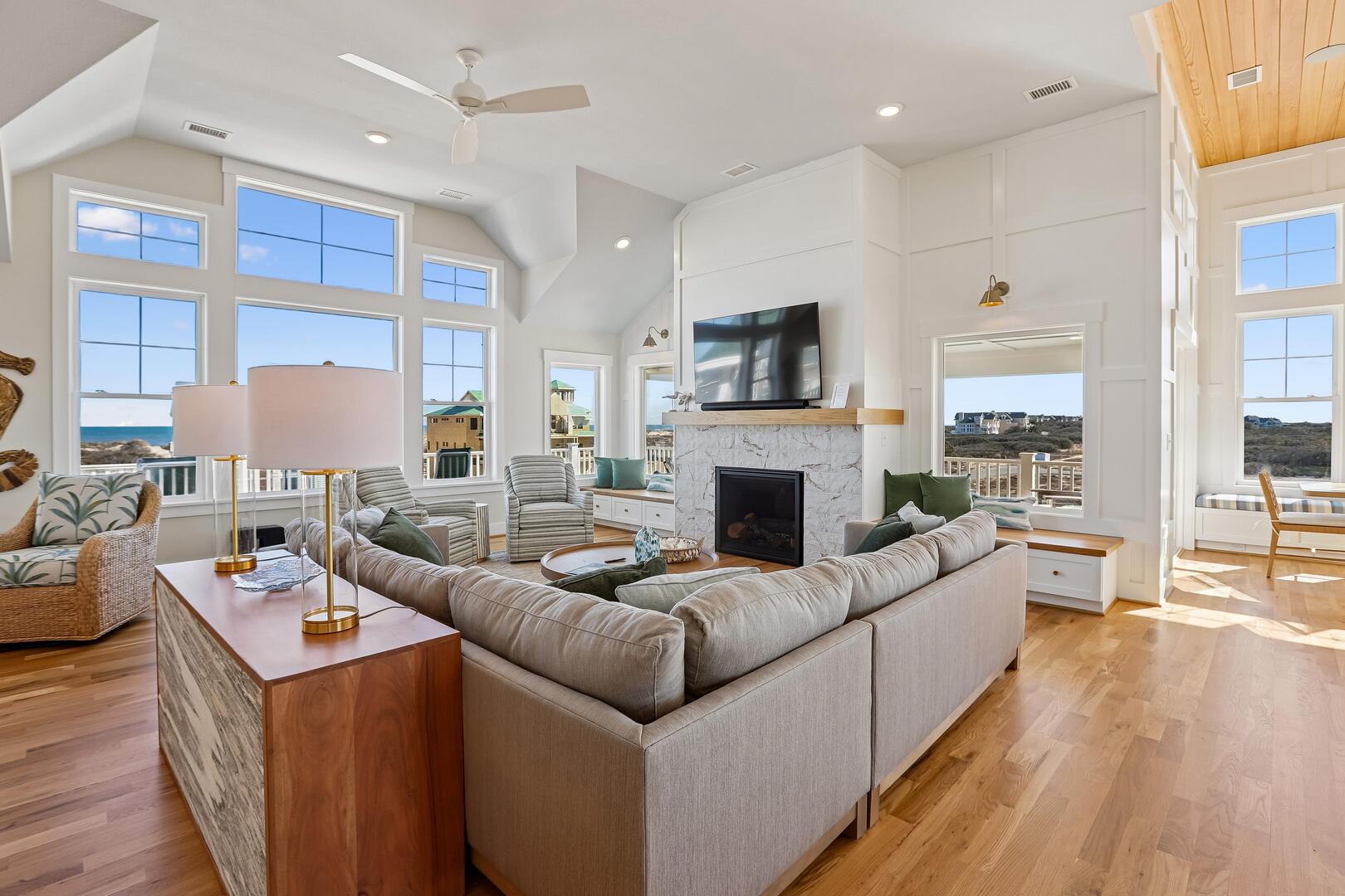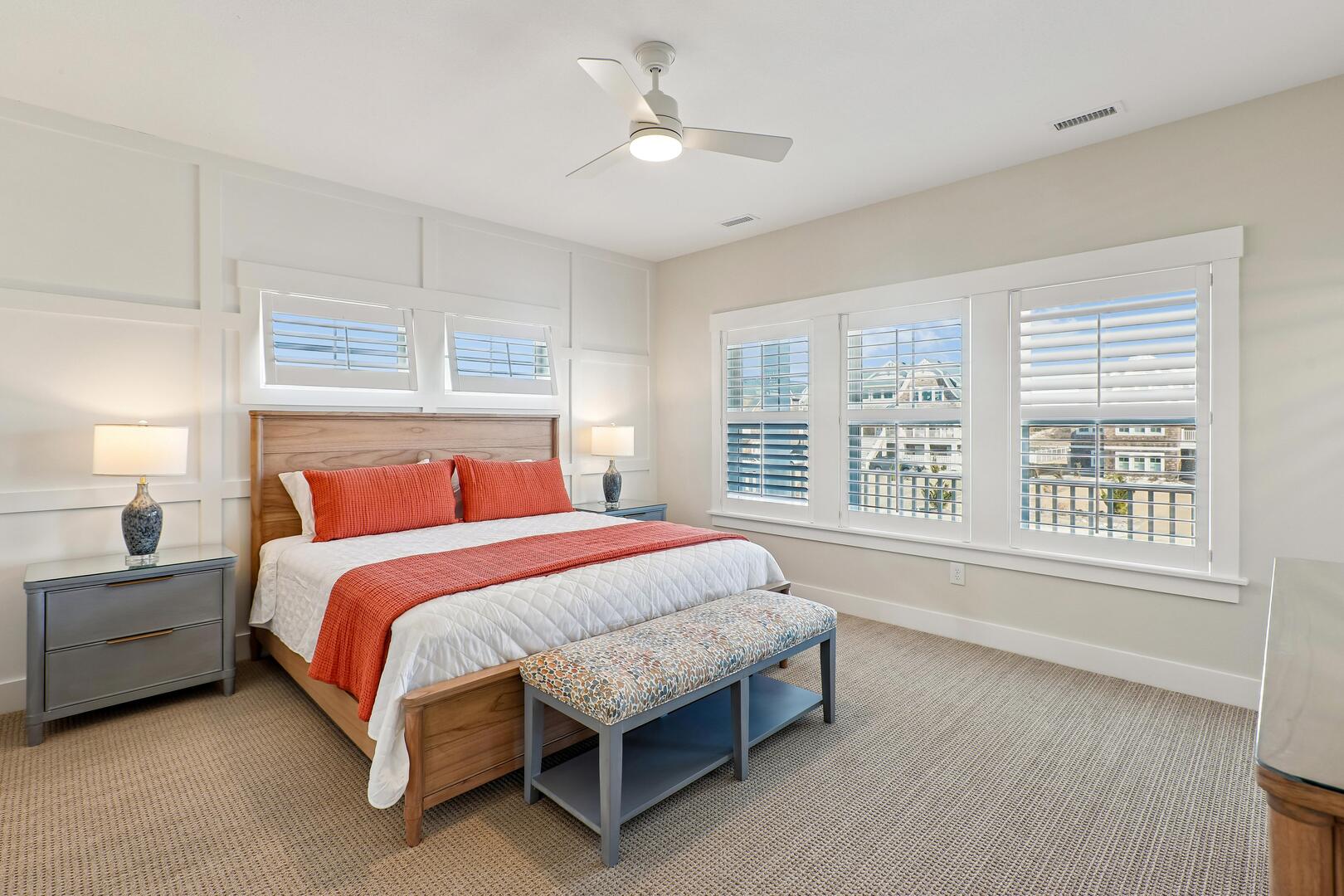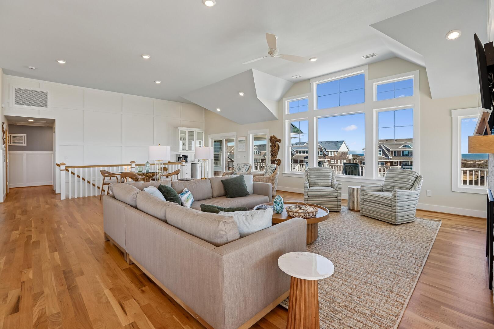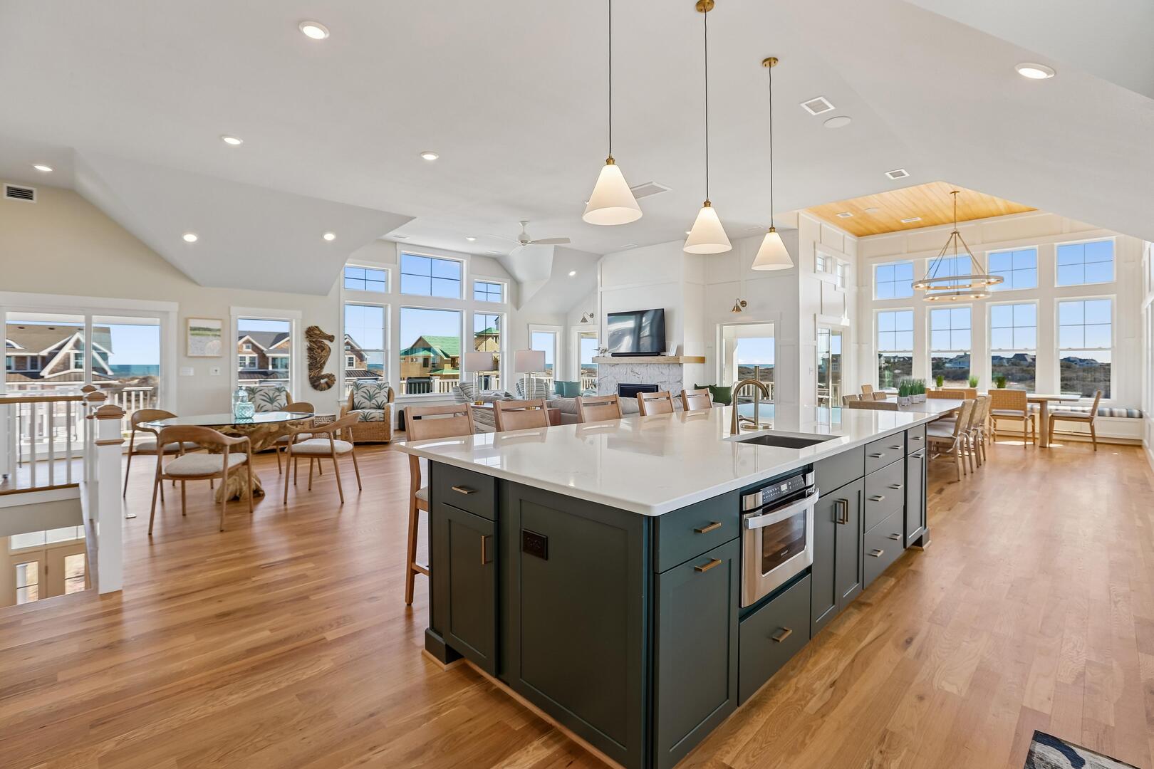 Top Floor: Kitchen, Dining Room, Living Room, Wet Bar, Powder Room, Sitting Room, 2 King Bedrooms with Private Bathrooms