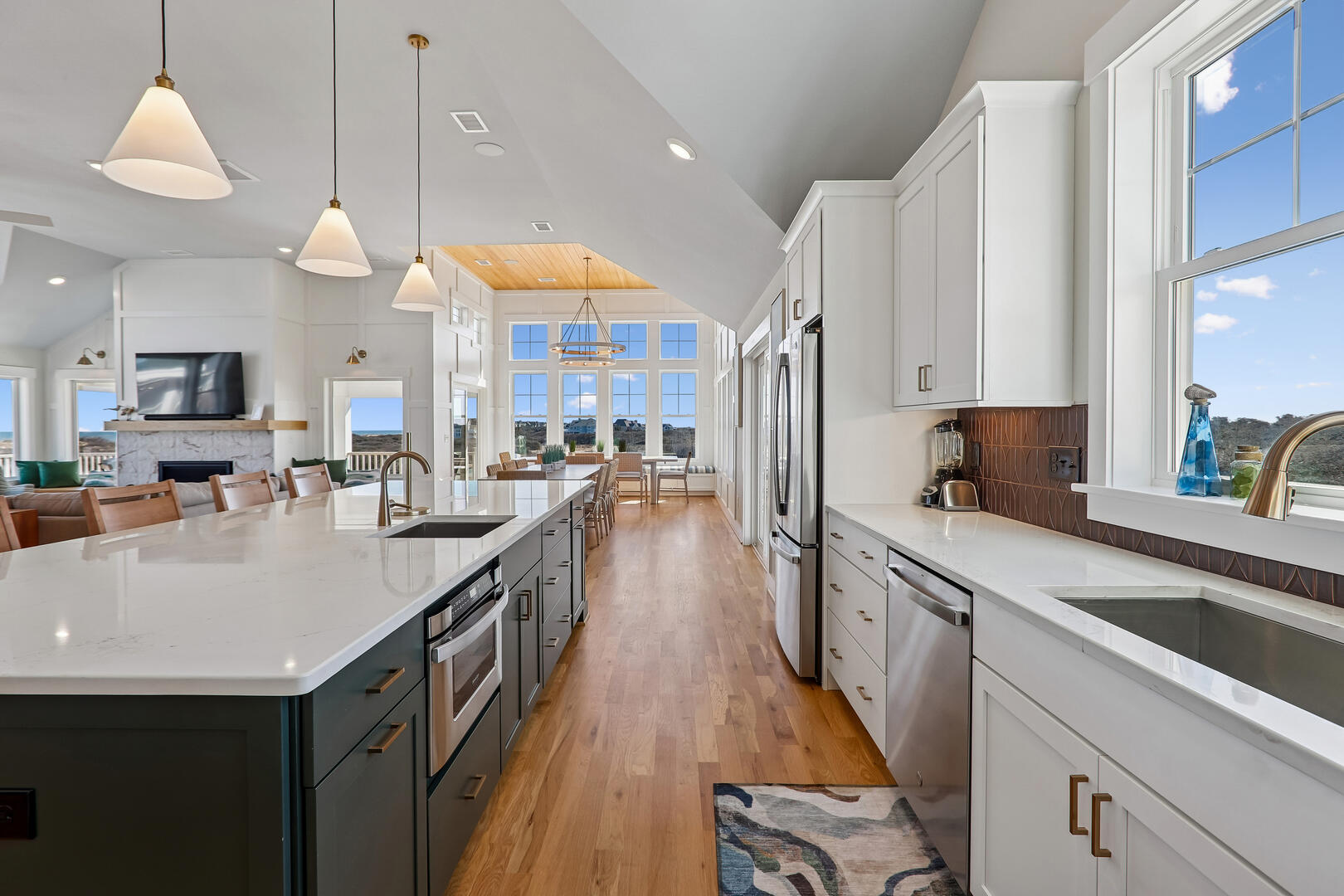 Top Floor: Kitchen, Dining Room, Living Room, Wet Bar, Powder Room, Sitting Room, 2 King Bedrooms with Private Bathrooms