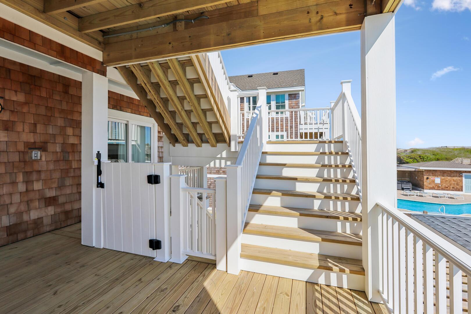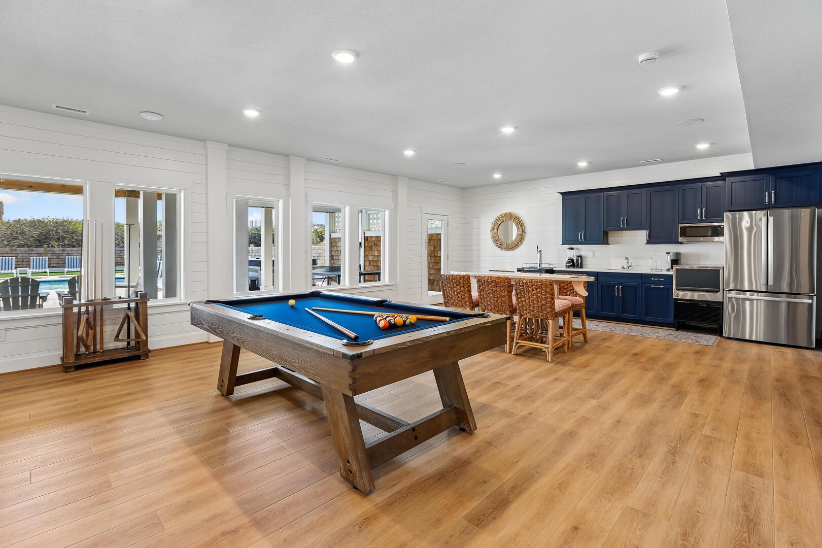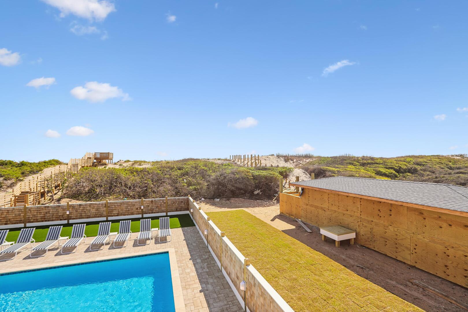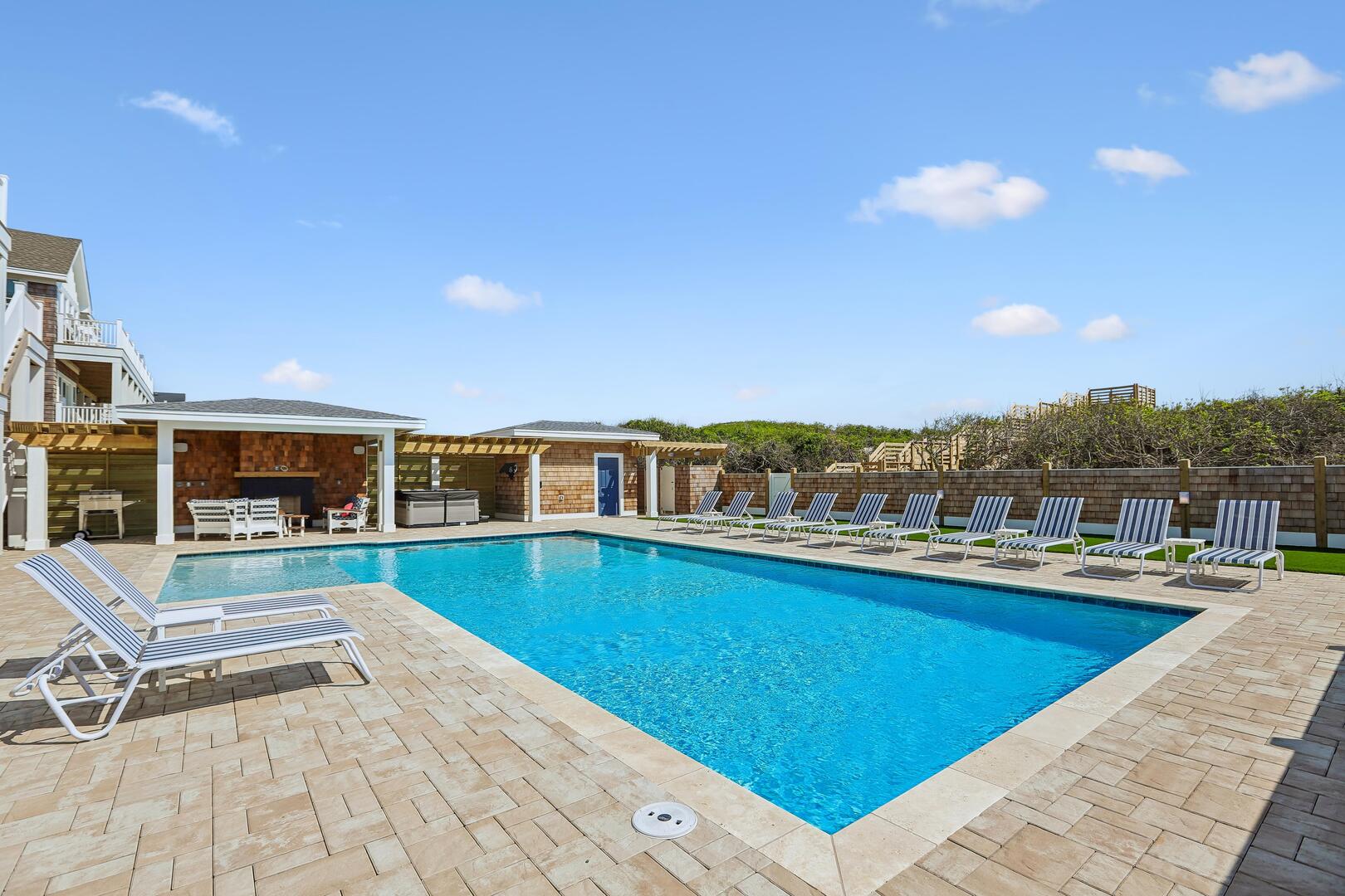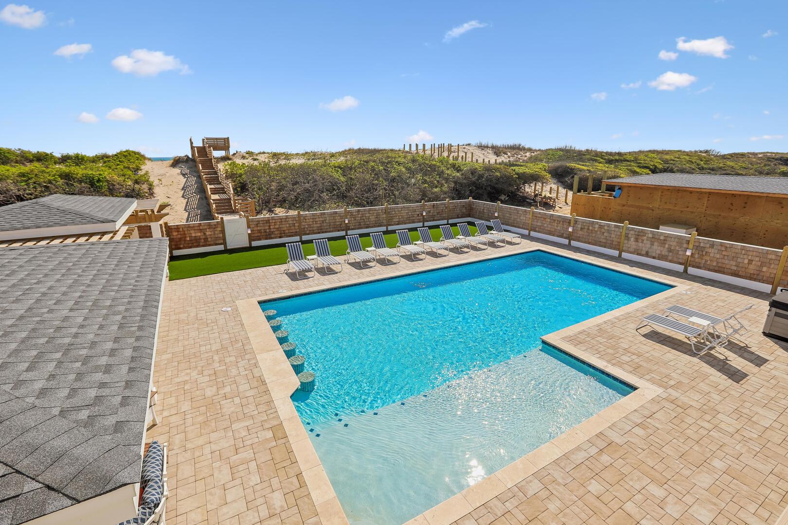 Enjoy a private oceanfront pool, relaxing hot tub, and easy beach access just over the dunes. Inside, an elevator connects all levels for ultimate convenience, while a state-of-the-art theater room, game room, and fitness room provide entertainment and activity options for every age.