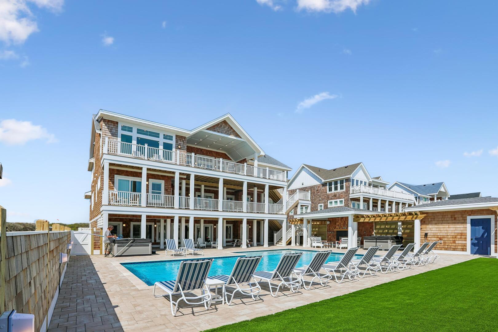 Be among the first to experience the Fearing House, an extraordinary 12-bedroom oceanfront estate located in the exclusive Pine Island Limited community of Corolla. Now accepting reservations for 2026!