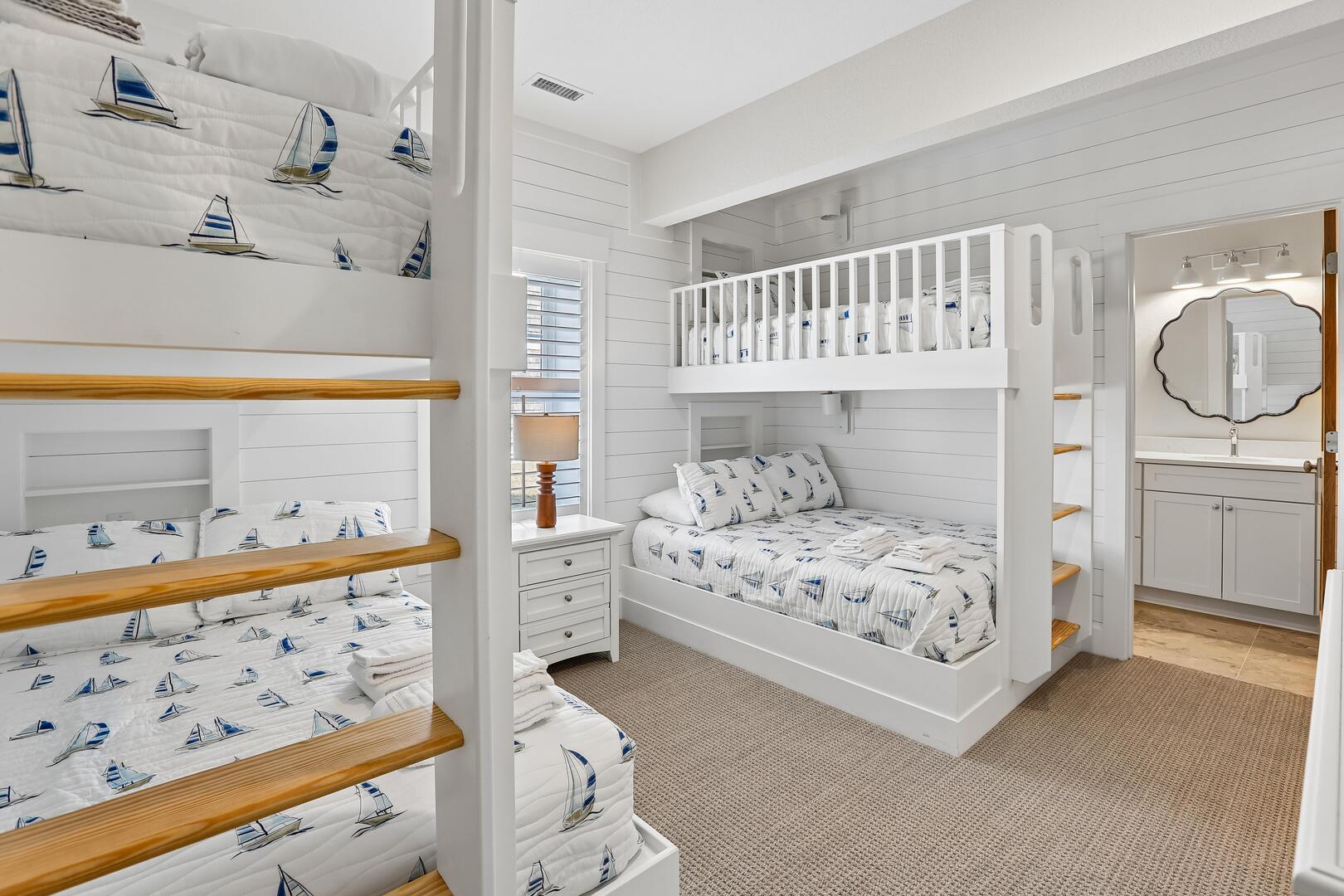 - Bedding: 11 Kings, 2 Pyramid Bunks