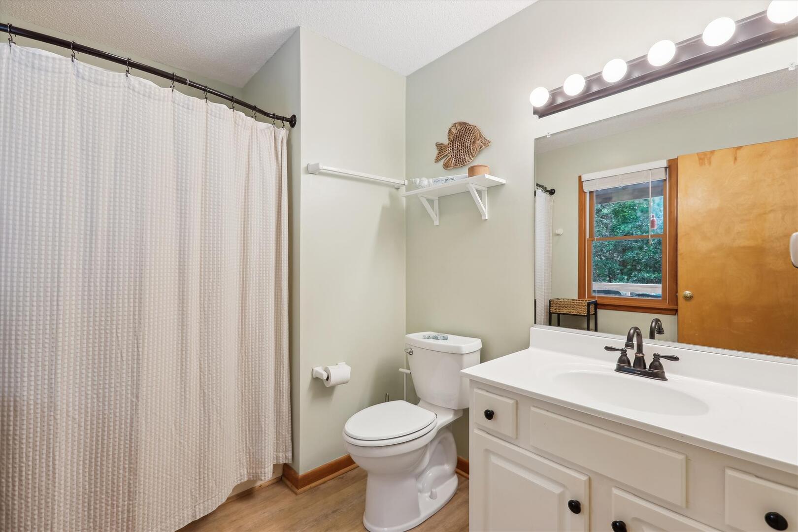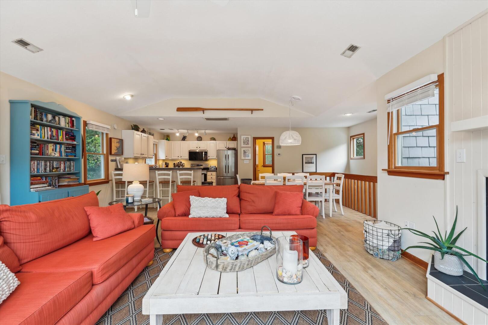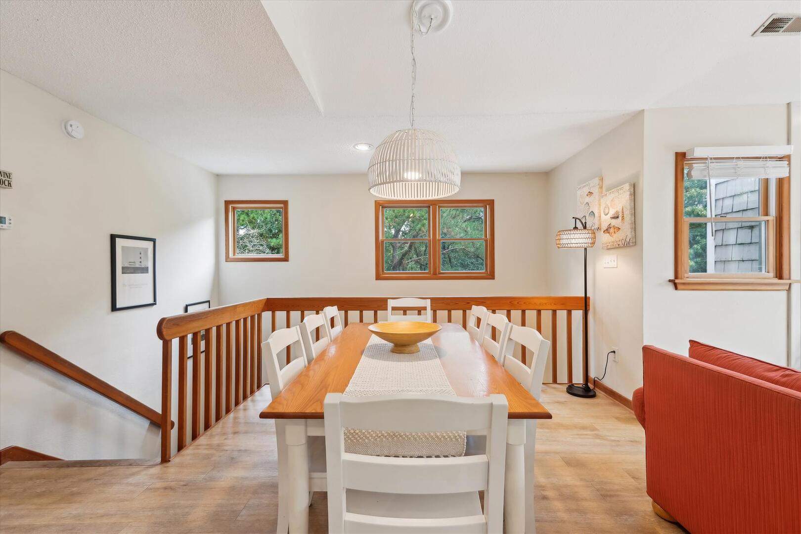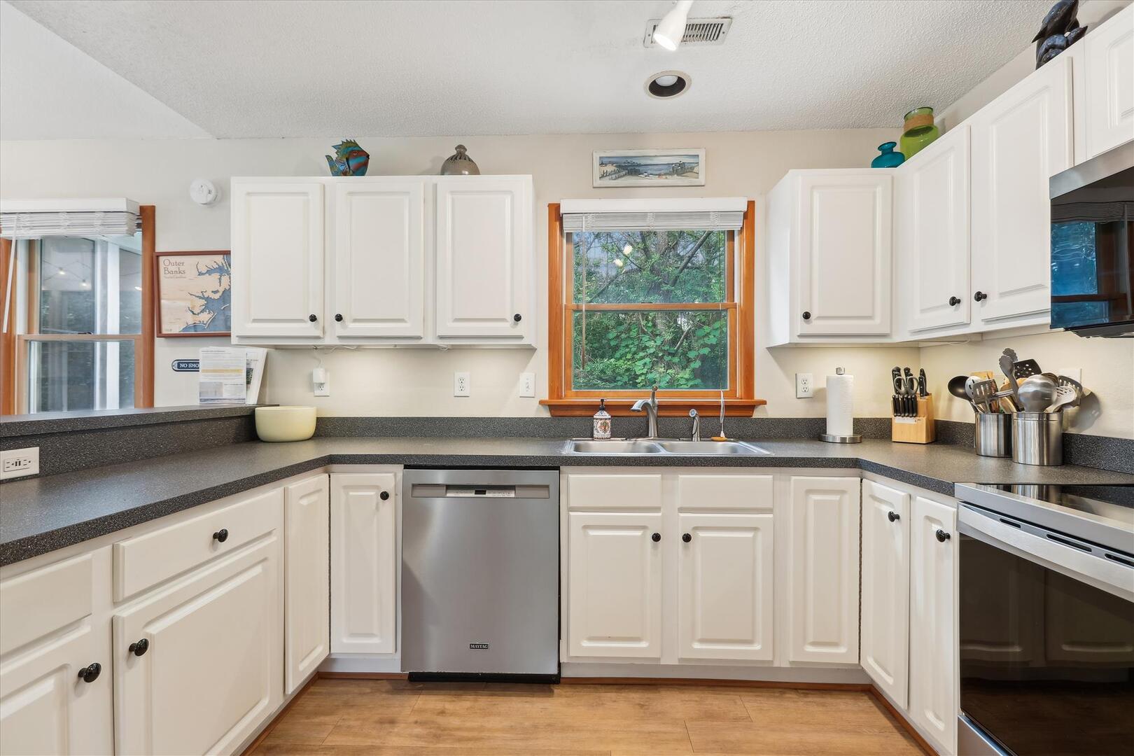 Located in the quiet residential neighborhood of Chicahauk in Southern Shores, this vacation home is just a short walk to the beach and offers plenty of opportunities for family activities during your stay, including biking, boating, swimming, surfing, shell seeking, and more! The spacious kitchen, adorned with coastal accents and equipped with every essential, invites you to whip up your favorite meals while reminiscing about the day's adventures. The light streaming through the large windows brightens the space, evoking feelings of warmth and relaxation. Whether you're brewing your morning coffee or preparing a family feast, this home ensures a comfortable and memorable stay, making every moment of your vacation truly special.