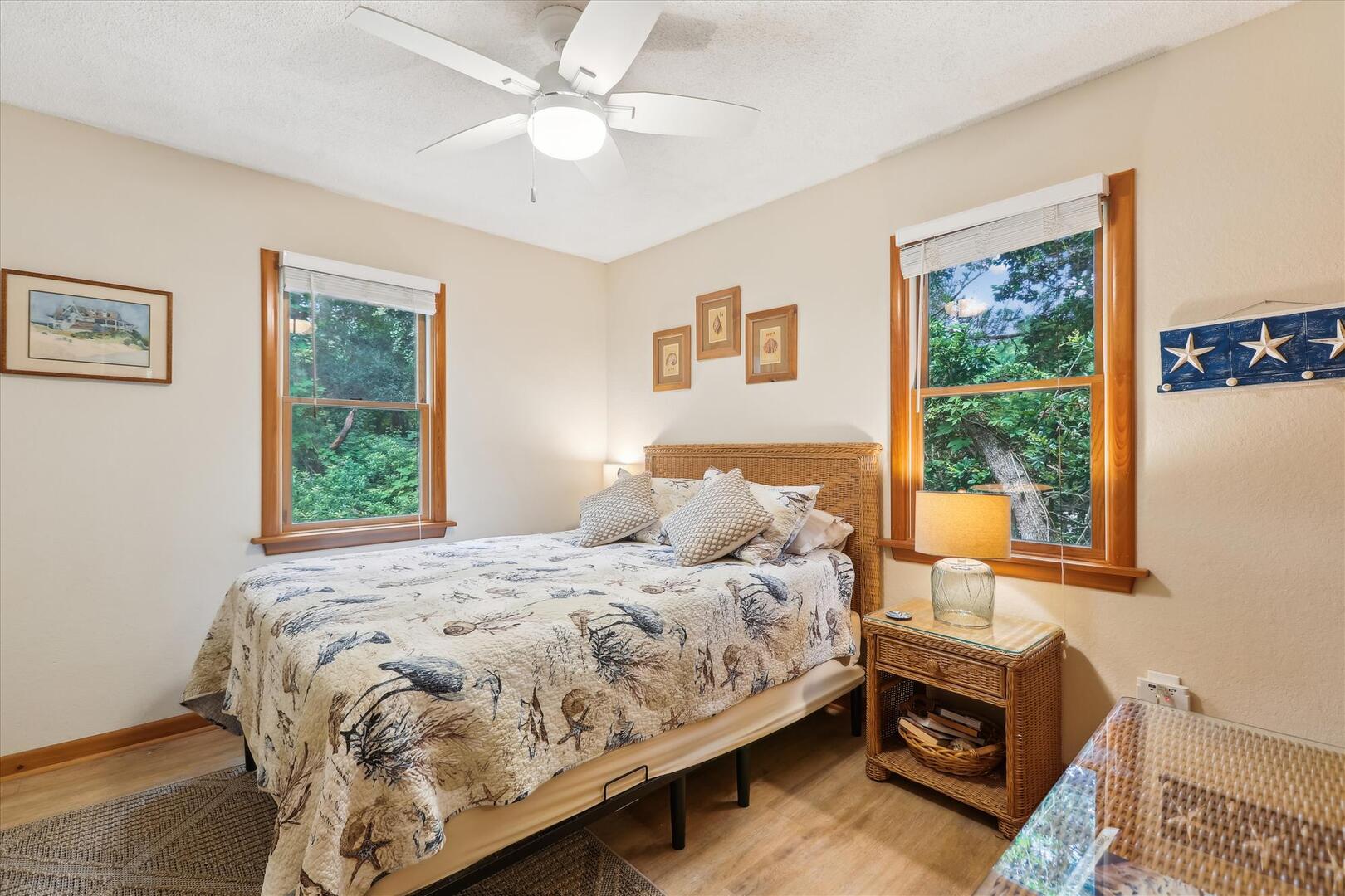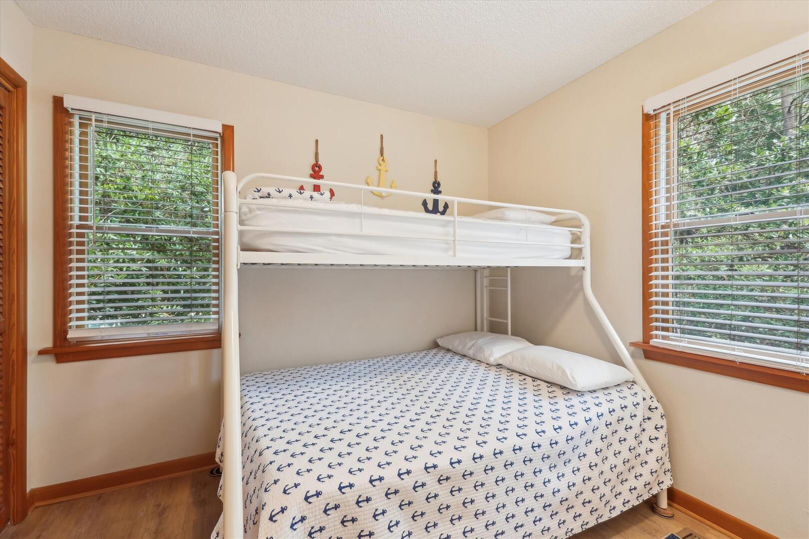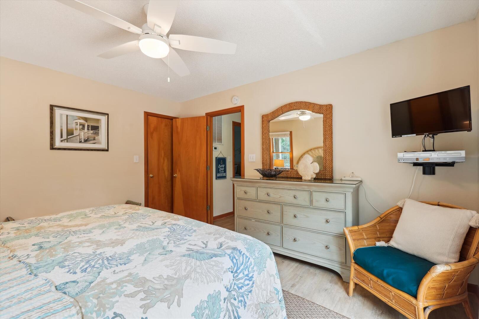 Entertainment is not a problem at Leeward Inn! The living area features a Flat Screen HDTV with DVD player and plenty of videos and movies for family movie night. HDTVs with DVD players are also in every bedroom so everyone can watch what they like when they want. Wireless High-Speed Internet means everyone can stay connected even on vacation, and the various toys, books, and board games will conquer boredom even on a rainy day. Leeward Inn is just a short walk to the ocean, and the Chicahauk community even has a concrete path right to the beach. This vacation home has access to many community amenities including tennis, a playground with a soccer field and basketball court, pickleball court and 2 marinas! There are even 2 private parking areas at the beach just for Chicahauk Guests!