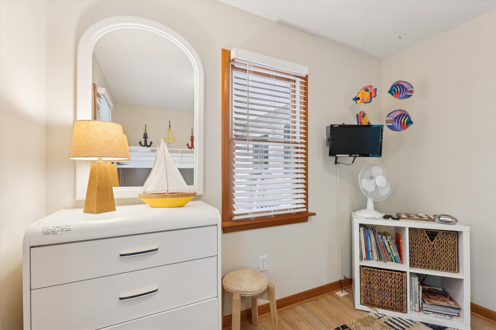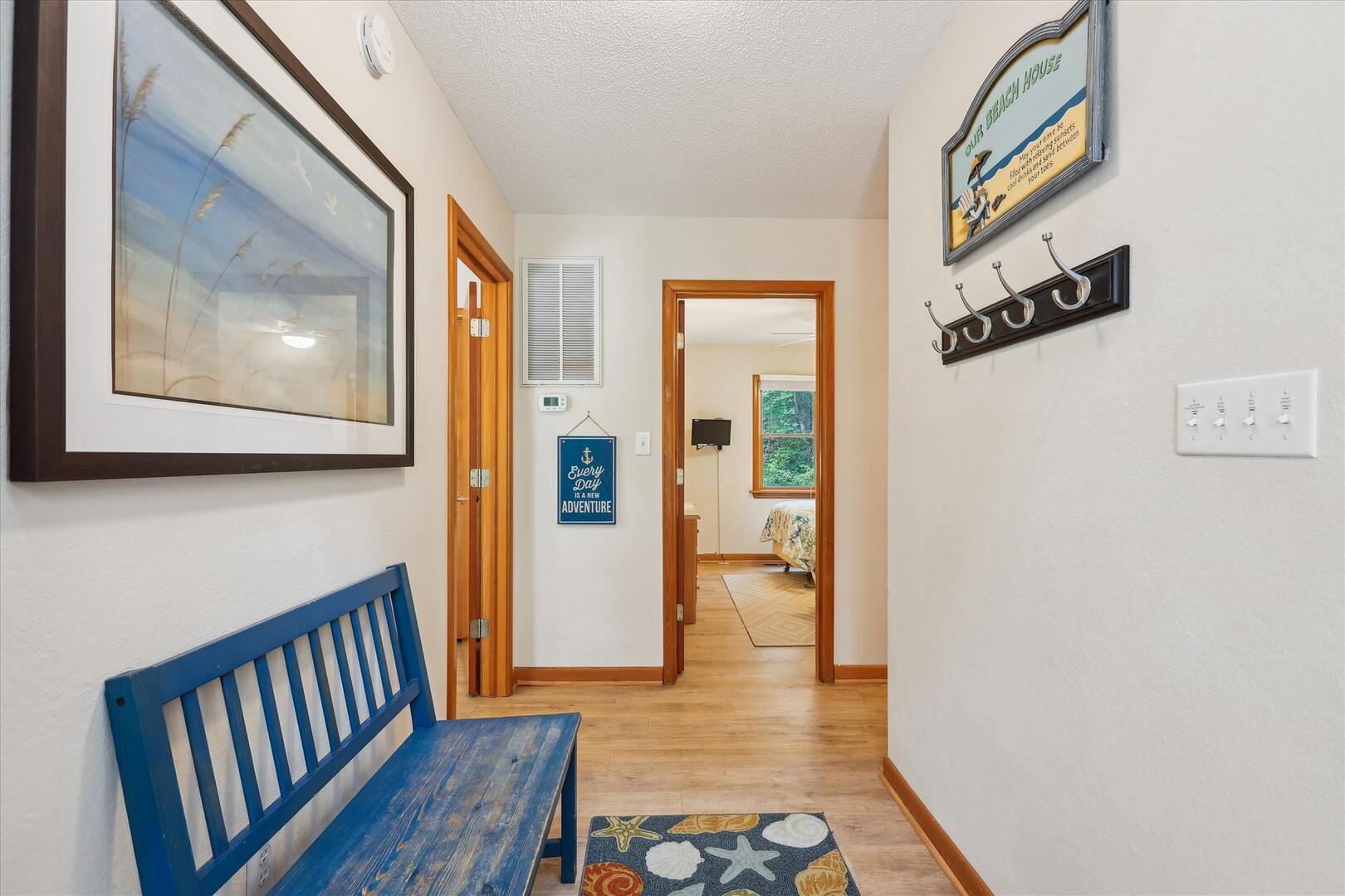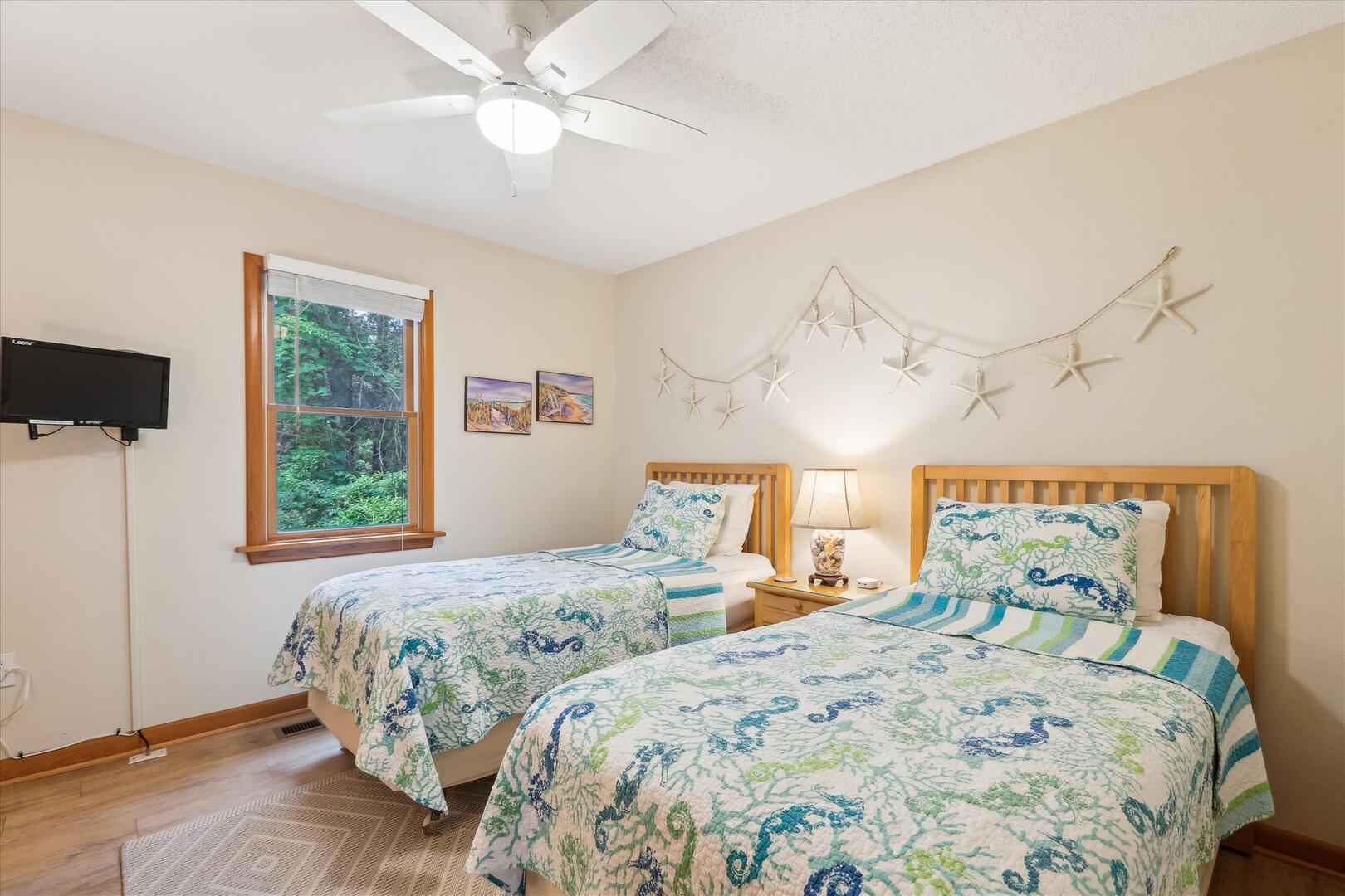 Entertainment is not a problem at Leeward Inn! The living area features a Flat Screen HDTV with DVD player and plenty of videos and movies for family movie night. HDTVs with DVD players are also in every bedroom so everyone can watch what they like when they want. Wireless High-Speed Internet means everyone can stay connected even on vacation, and the various toys, books, and board games will conquer boredom even on a rainy day. Leeward Inn is just a short walk to the ocean, and the Chicahauk community even has a concrete path right to the beach. This vacation home has access to many community amenities including tennis, a playground with a soccer field and basketball court, pickleball court and 2 marinas! There are even 2 private parking areas at the beach just for Chicahauk Guests!