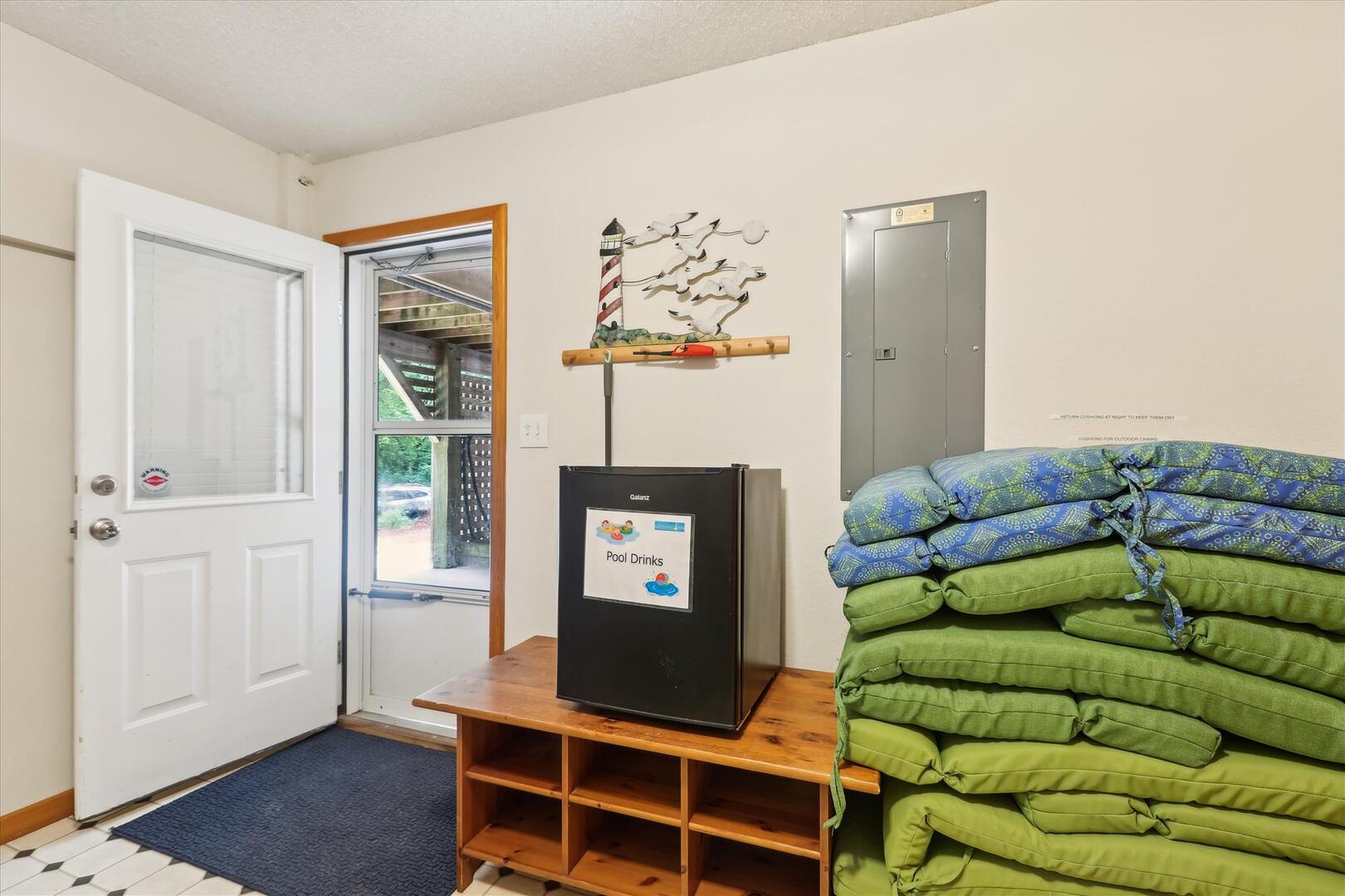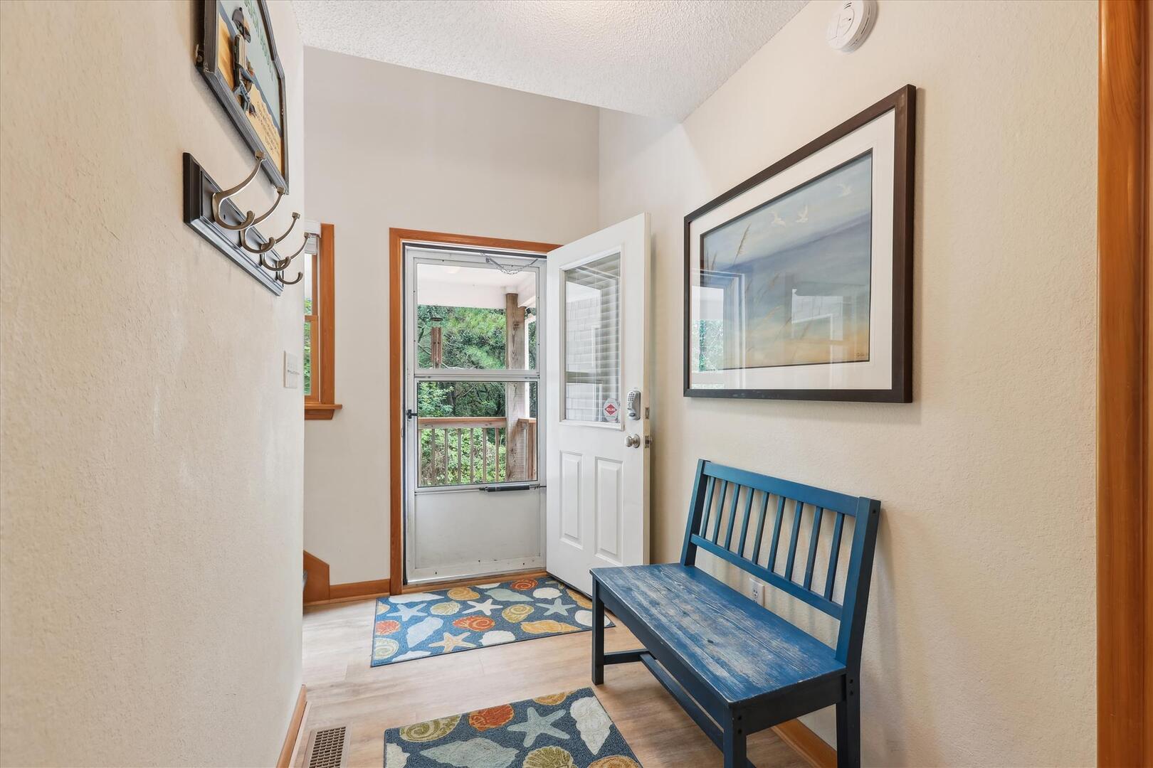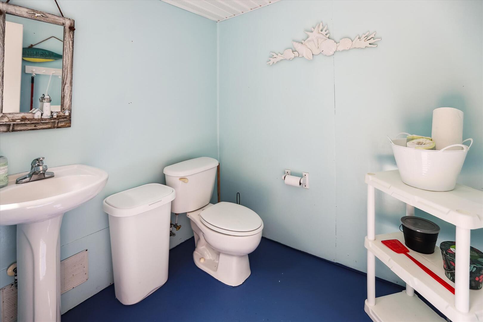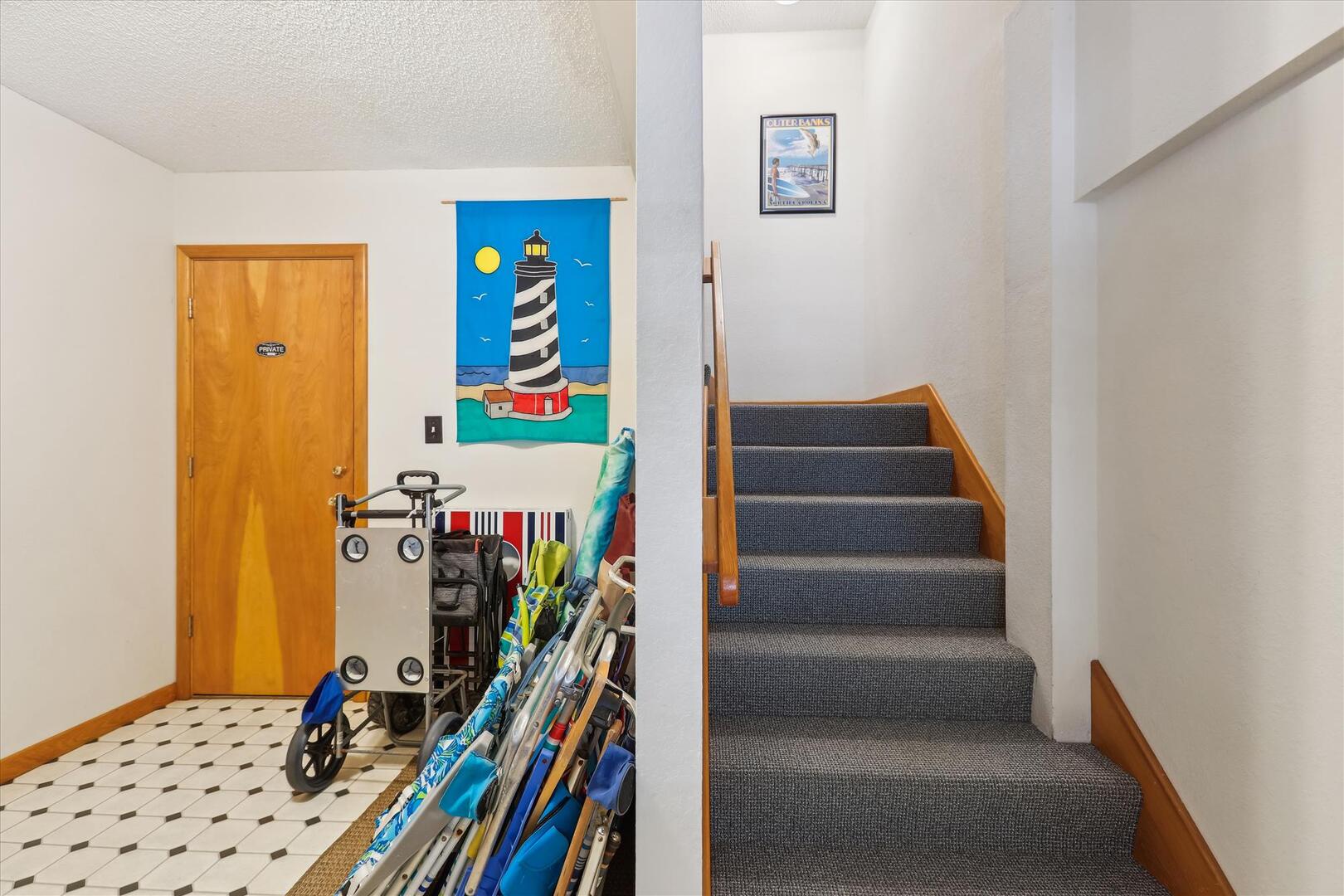 But, you may never want to leave Leeward Inn with all the amenities it has to offer! A Private Pool in the backyard with Hot Tub, lounge chairs, and even a convenient bathroom beside the pool area make it a great spot for families to spend the day. Pool available 5/6-10/7. There is even a swing and sandbox under the house where the kids can play in the shade. Double wraparound decks offer both sun and shade with built-in benches, deck chairs, and even a hammock to relax in! A screened porch with a picnic table is on the top level and is a perfect spot for a quick outdoor meal. Cook up that meal on the built-in charcoal grill and you'll have hamburgers and hot dogs for a crowd in no time! Inside, the comfortable furnishings will make your family feel at home. The full kitchen with a dishwasher and microwave make it easy to prepare a quick breakfast or a big family dinner, and the washer and dryer provided help to keep bathing suits and beach towels ready for another day of Fun in the Sun. Central air and heat, as well as ceiling fans, will keep everything cool and comfortable even on the hottest OBX days. Fireplace is decorative only.